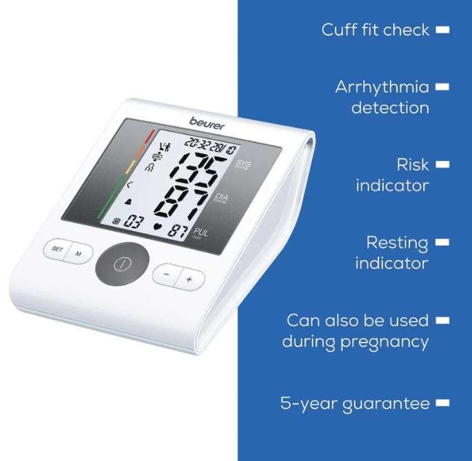 • قياس ضغط الدم والنبض أوتوماتيكيًا بالكامل في أعلى الذراع