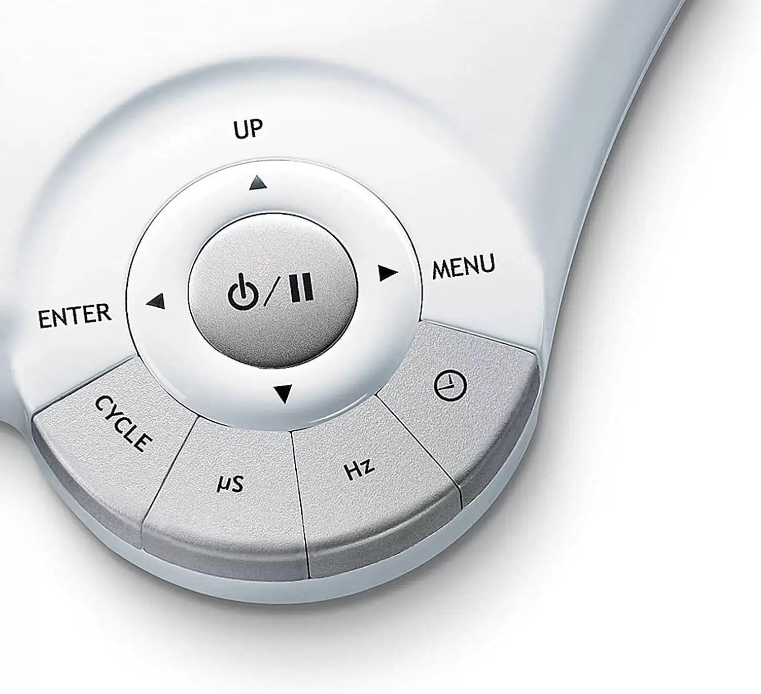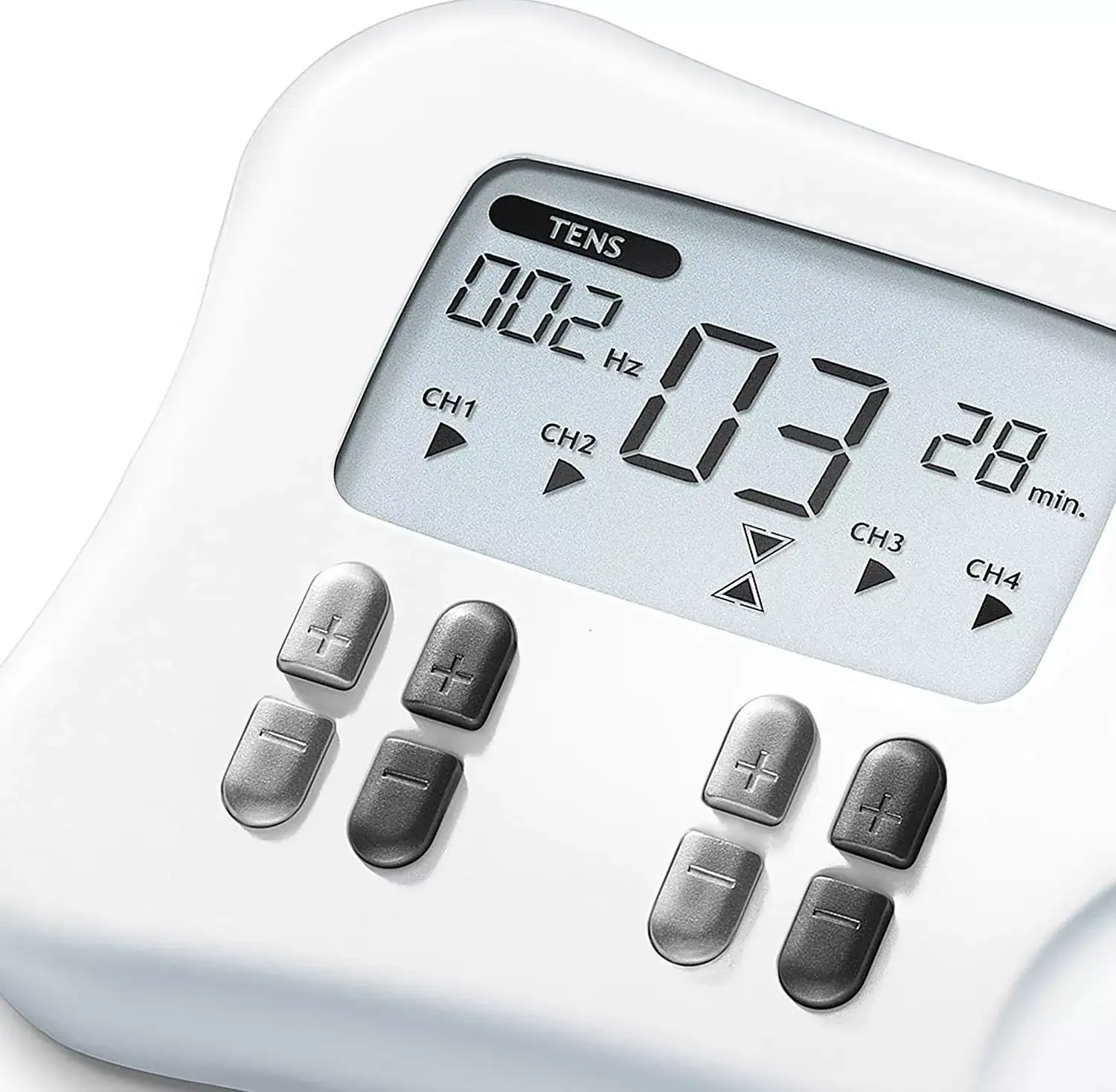 جهاز ال TENS/EMS هو الاختيار الأمثل لتسكين الألم و حث العضلات. به 8 أقطاب و 4 قنوات منفصلة الضبط.