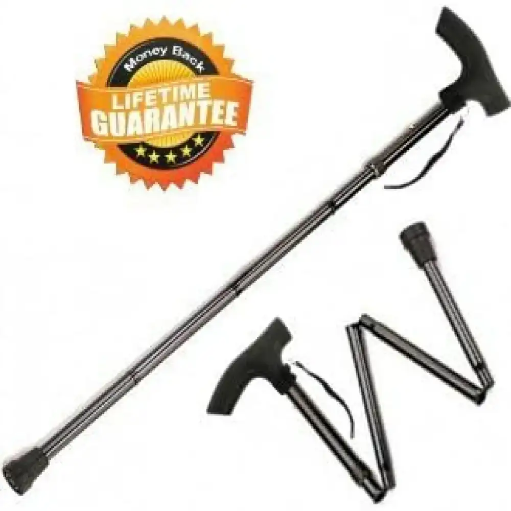 عكاز عصا بهيكل معدني أسود اللون ومقبض بلاستيكي