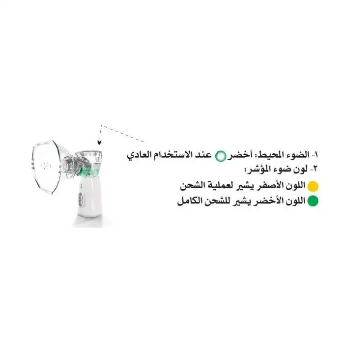 كفاءة التوصيل (تقنية Mesh): يحوّل الدواء السائل إلى رذاذ دقيق جدًا، حيث يصل حجم الجزيئات إلى أقل من 5 ميكرون، مما يزيد من فعالية وصول الدواء إلى الرئتين.