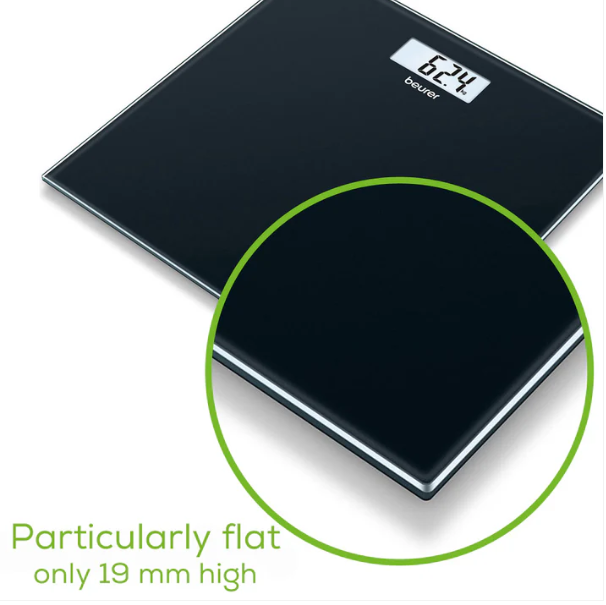 بفضل تصميمه النحيف بارتفاع 19 مم فقط، يتميز ميزان الحمام الأسود الأنيق بسهولة التخزين، مما يجعله مثاليًا للحمامات الصغيرة.