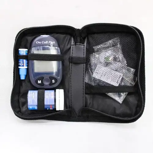 - جراب حمل: لحماية الجهاز وشرائط الاختبار أثناء النقل.