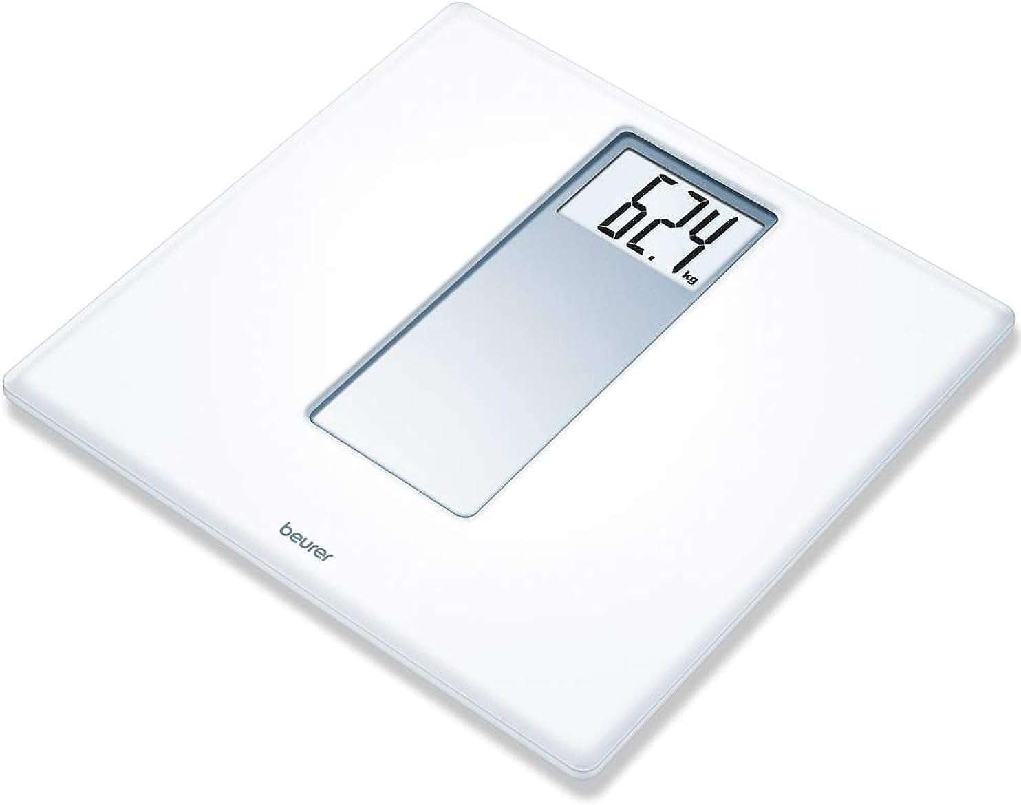 ميزان الحمام الشخصي مُبهرٌ بجزءه الزجاجي الأنيق الذي يُضفي لمسةً مميزةً عليه. شاشة LCD الكبيرة تُسهّل عملية الوزن.