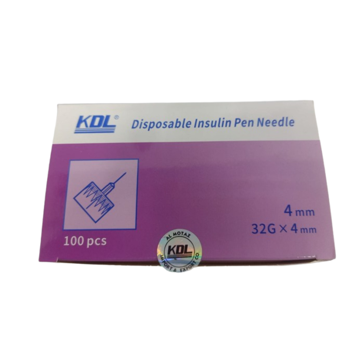 إبر الأنسولين من KDL هي إبر قلم أنسولين للاستعمال مرة واحدة، مصممة لتوفير حقن آمن، مريح، وسهل لمرضى السكري. تأتي بمقاس 32G × 4mm وهو من أنسب المقاسات للحقن تحت الجلد بدون ألم تقريبًا. الإبرة معقمة وذات تصنيع دقيق يضمن ثباتها وسلاسة دخولها إلى الجلد دون تهيّج. مناسبة لجميع أنواع أقلام الأنسولين الأكثر شيوعًا، وتأتي في عبوة تحتوي على 100 إبرة.