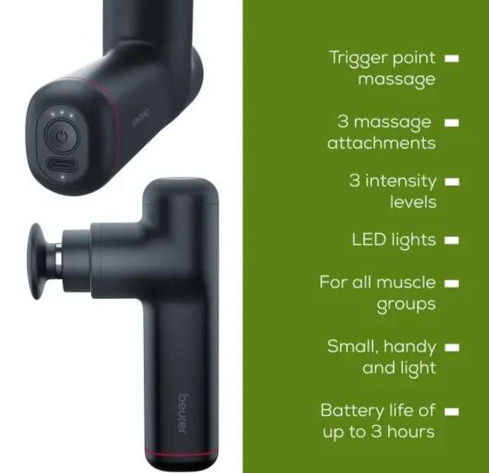 منتجات رائعة تأتي في عبوات صغيرة! بفضل حجمه الصغير الذي يبلغ 14.7 سم، يتميز مسدس التدليك MG 79 بحجمه الصغير، ولكنه قوي جدًا في الوقت نفسه. مع 3 مستويات شدة، و3 ملحقات تدليك، وعمر بطارية يصل إلى 3 ساعات، فهو مثالي لمناطق الجسم الحساسة مثل عضلات الرقبة والقدم والفك.