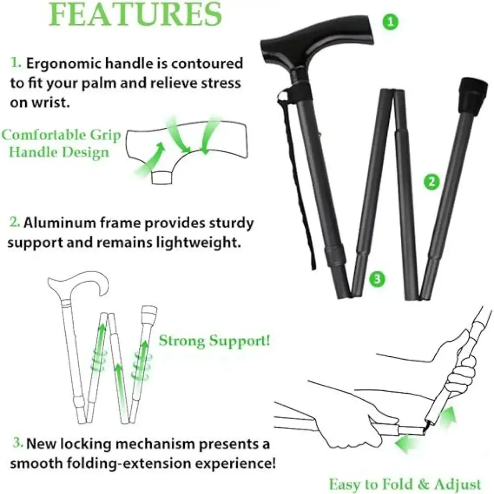 • الهيكل المعدني الأسود: يوفر الهيكل المعدني متانة وقوة للعكاز، مما يجعله قادراً على تحمل الوزن والتأثيرات الخارجية. اللون الأسود يضفي عليه مظهرًا عصريًا وأنيقًا.