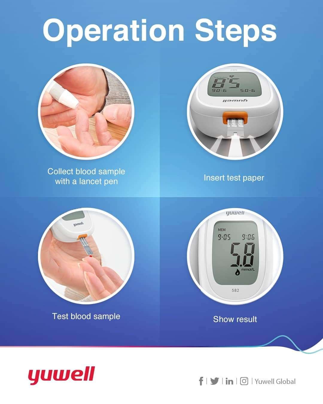 جهاز قياس السكر فى الدم من yuwell + 50 شريط قياس هدية