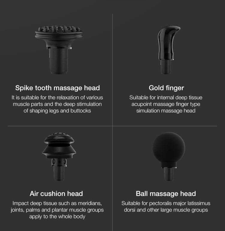 - رؤوس تدليك متعددة: يأتي مع مجموعة متنوعة من رؤوس التدليك لتلبية احتياجاتك المختلفة، سواء كنت بحاجة إلى تدليك عميق للعضلات الكبيرة أو تدليك لطيف للمناطق الحساسة.