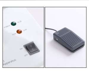 تحكم مزدوج وسهل: يمكن التحكم في تشغيل الجهاز يدوياً من خلال مفتاح على اللوحة الرئيسية، أو بدون استخدام اليدين عن طريق دواسة القدم المرفقة، مما يوفر مرونة كبيرة للطاقم الطبي.