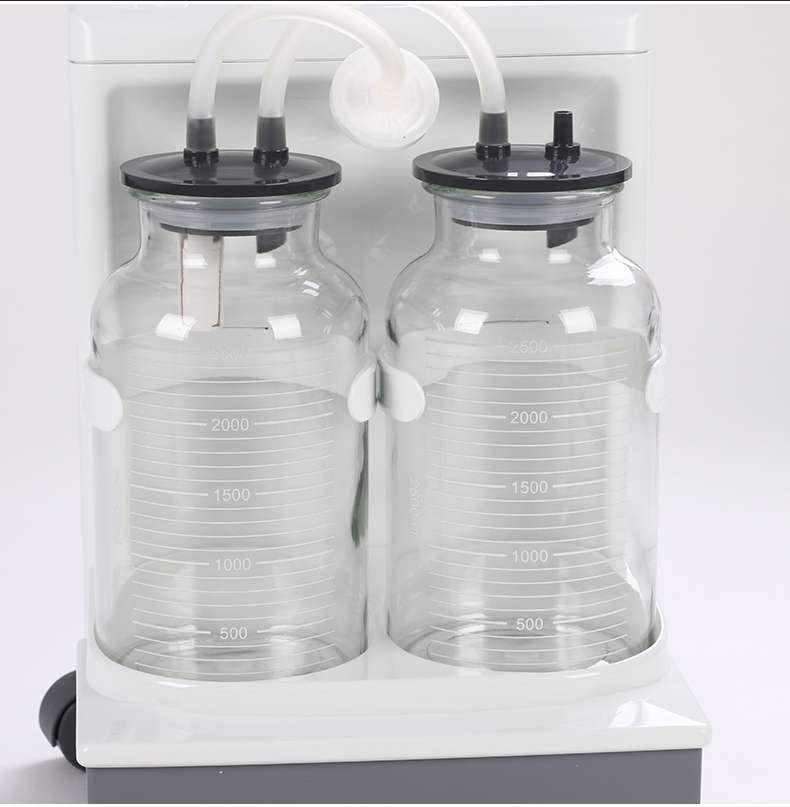 سعة تجميع كبيرة 5 لتر: يحتوي على وعاءين (برطمان) متينين من البلاستيك الشفاف، سعة كل منهما 2.5 لتر، مما يوفر سعة إجمالية كبيرة تسمح بالاستخدام المطول في العمليات الجراحية.