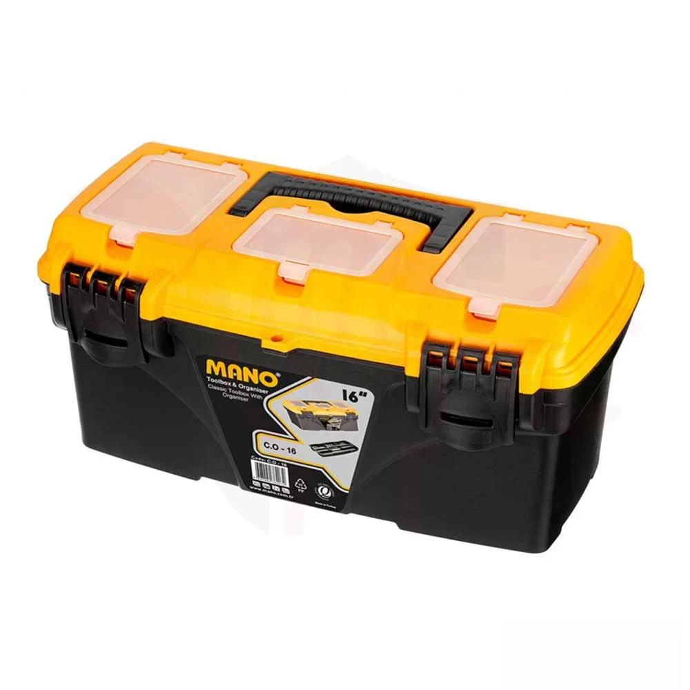 صندوق أدوات MANO C.O-16 مقاس 16 بوصة هو الحل الأمثل لتنظيم وحمل جميع أدواتك ومستلزماتك الصغيرة. يتميز هذا الصندوق بتصميمه المتين والعملي الذي يجمع بين اللونين الأسود والأصفر الزاهي، مما يجعله سهل الرؤية في أي ورشة عمل أو موقع.